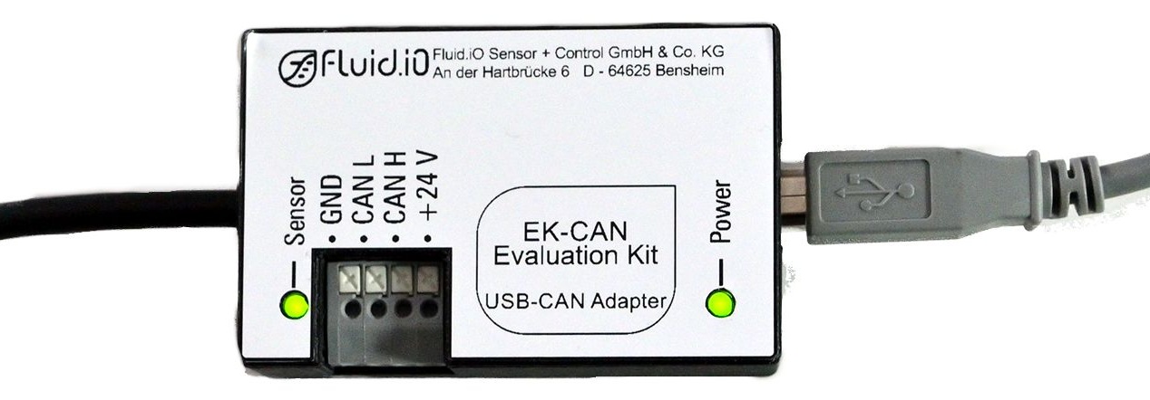 The EK-CAN evaluation kit is the ideal solution for evaluating and commissioning Fluid.iO CAN bus sensors.